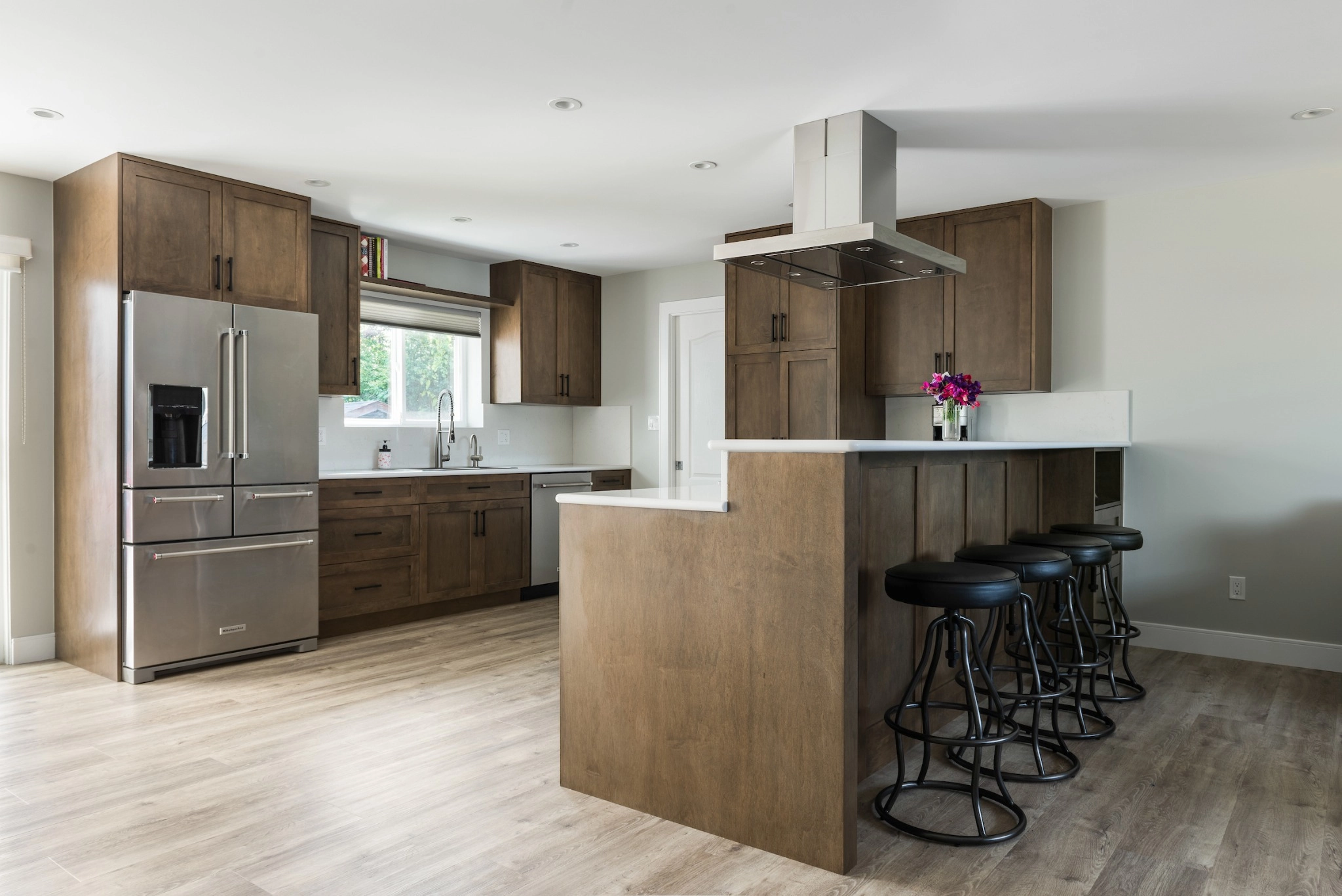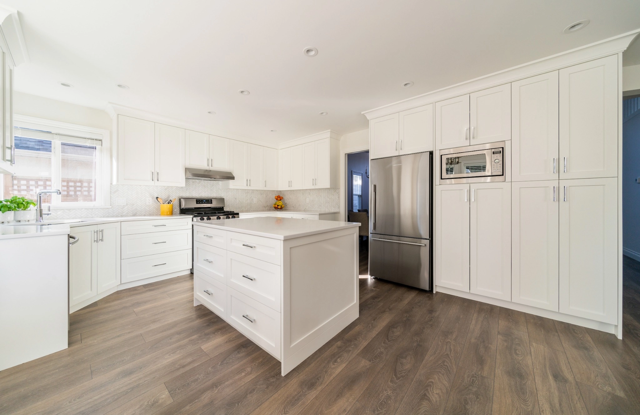 Experience the transformation of this full kitchen renovation, where a reimagined layout, central island, and layered finishes elevate both function and flow in a beautifully modern space.