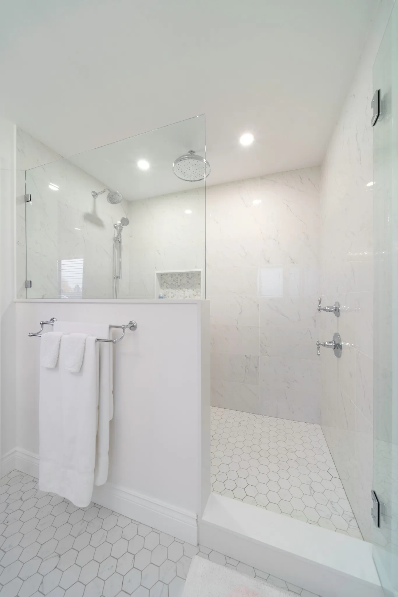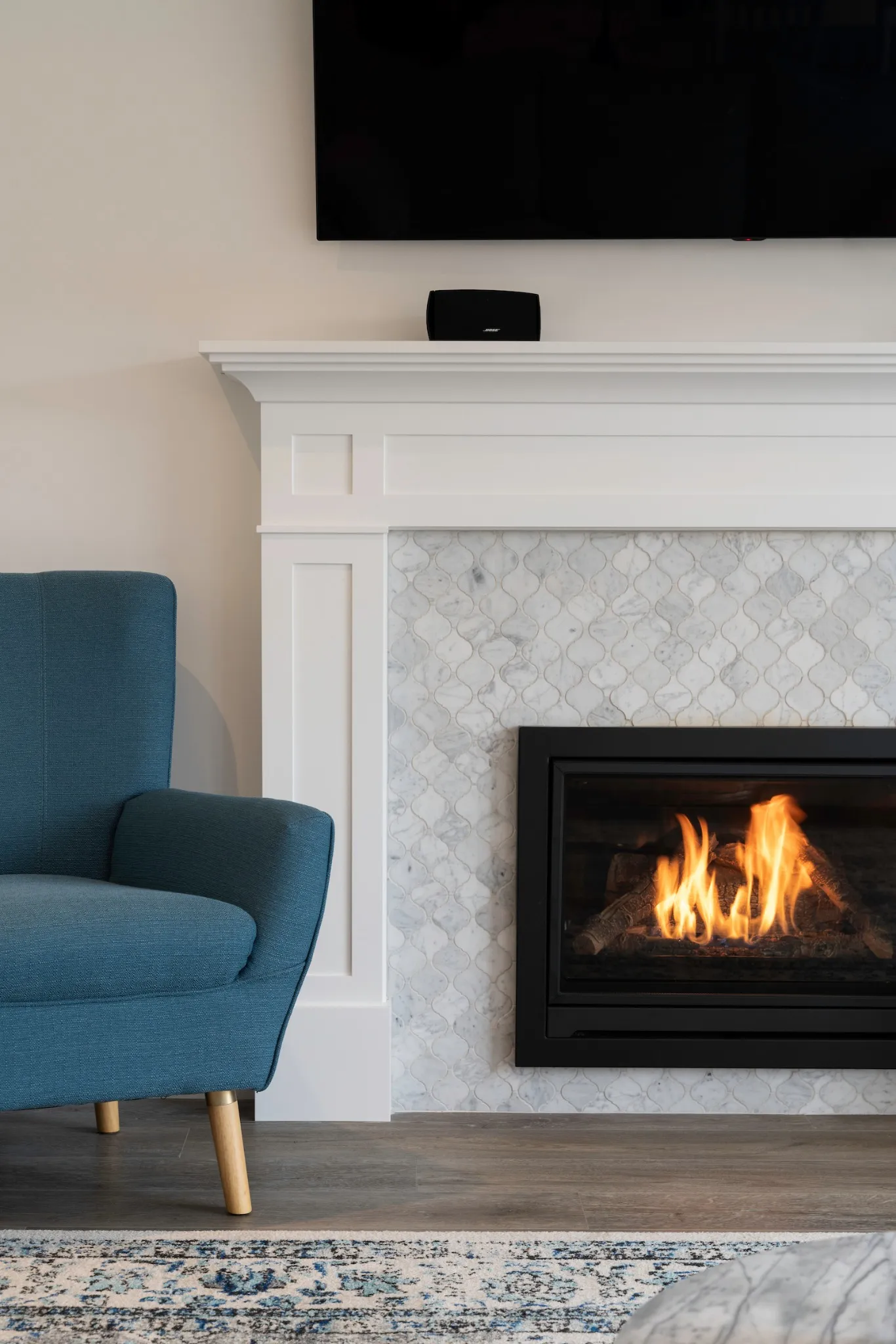 Dive into the details of WH Chamberlayne’s renovation, which includes a primary bathroom reimagined with high-end fixtures and heated comforts, a refreshed home aesthetic with modern flooring and fresh paint, and a bespoke primary walk-in closet. The project also transformed the living area into an open concept space, adding a modern fireplace as a central feature.