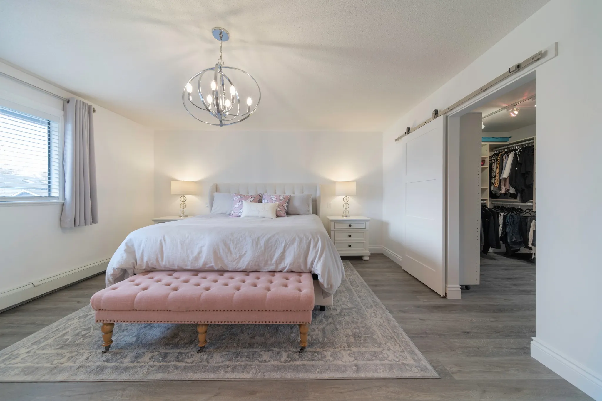 The project included a major upgrade to personal spaces, establishing a sophisticated primary walk-in closet and a complete facelift throughout the home.