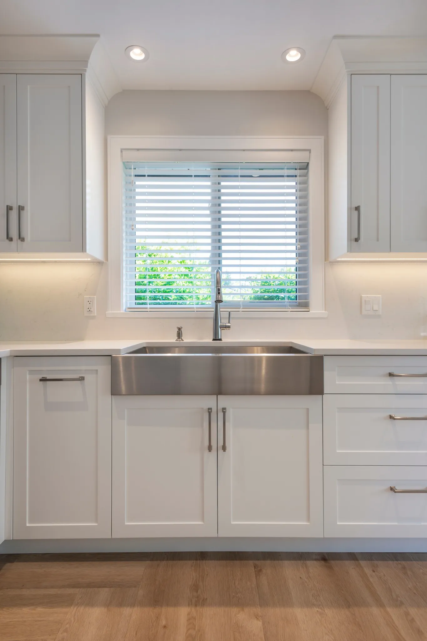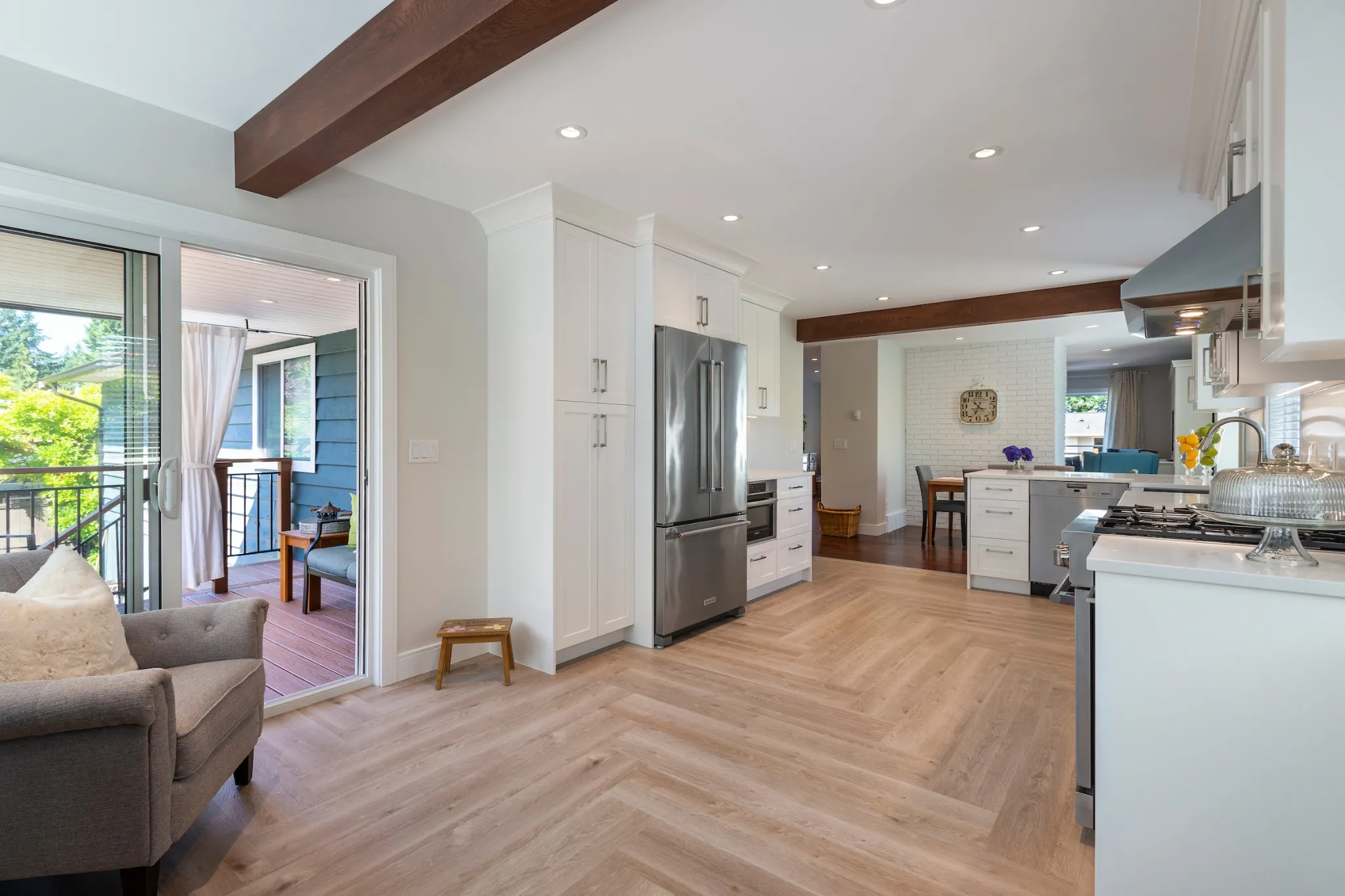 Kitchen renovation with new main floor trim and paint, plus a new deck off the kitchen