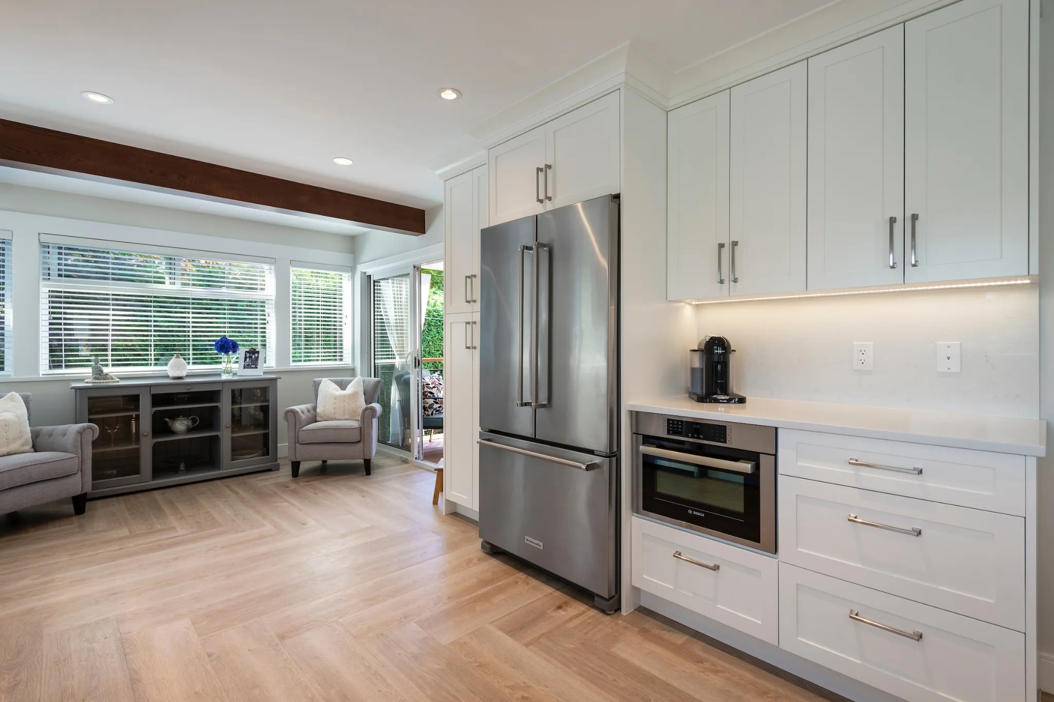 The kitchen at WH Delwood has been fully transformed, incorporating new cabinetry, high-quality countertops, and state-of-the-art appliances, all tailored to enhance functionality and style.